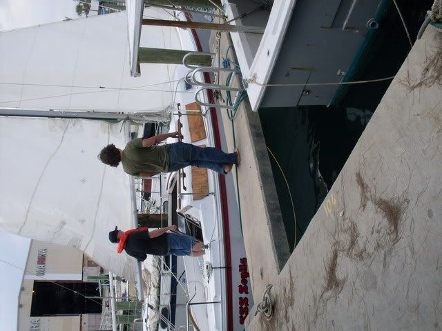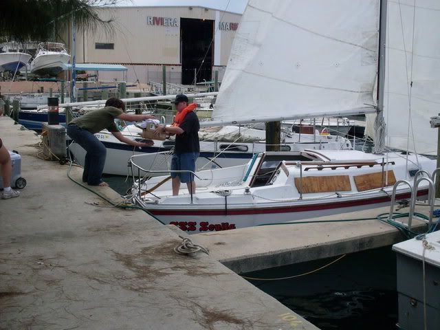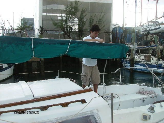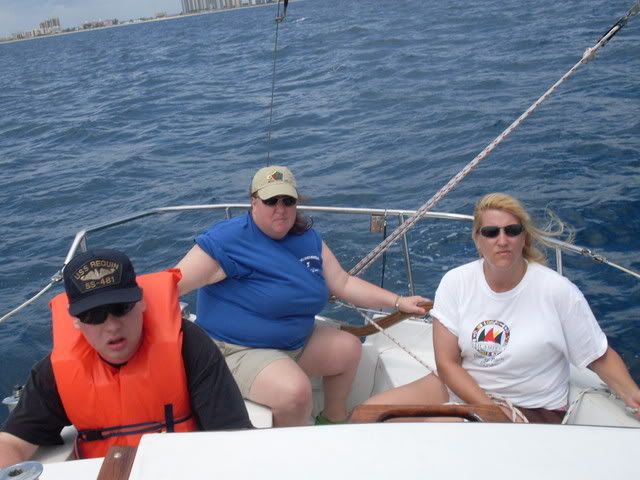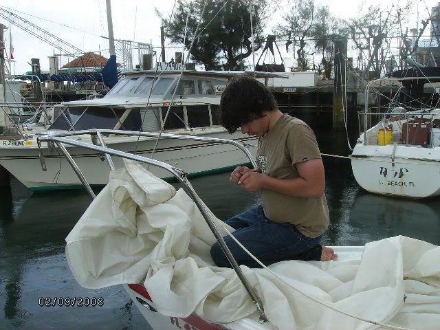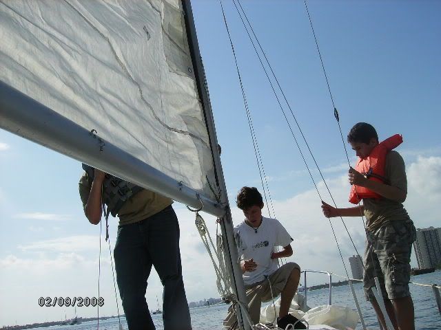 Hello, My name is Kendall and I'm in Sea scout Ship 247 (sorta like a boy scout unit) here in Boynton Beach Florida. Our ship has been around for a little over a year and in September a sailboat was donated to us from an older gentleman in Del Ray Beach. The Boat in Question, a '79 SK/SR Cat25 #961. This sailboat had been very neglected, having never been touched for over two years, obviously the boat need a lot of work (over fifteen hundred dollars worth)not including hundreds of hours of labor, donated engine work, donated bottom job and paint, donated drydock, and a donated slip. We named the boat "Scylla" after a mythical beast in Homers the odyssey. To say the least we are exhausted but just happy she floats. Throughout restoration, I and my shipmembers have looked at this site numerous times and would like to express our gratitude. And, so last saturday, the 9th, we sailed the boat for the first time. It was a blast! After motoring out of our slip at Riviera Beach Municipal Marina, around Peanut island, through the Lake Worth inlet, we set sail and sailed up and back along the coastline for almost five hours. Then we motored back in when it started raining, and hastily covered the sails and packed up. I am telling this not only to document the voyage, but to say thanks.