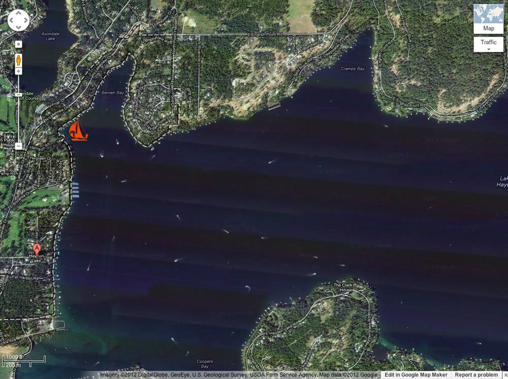 Pend Oreille was huge. Last season I had a slip at the deep end of the lake (southern end, 1300' deep) but never made it past the other end of the bay on a day sail. Thanks for pointing out how weird the wind is on these mountain lakes, I was going to tell my Hayden story but didn't want to sound crazy. Every N.Idaho lake is glacially carved into a deep V, with 100's of feet submerged and 100's of feet of mountains and few breaks in this pattern. Hayden Lake has a northernly flow until your reach my dock noted on the map. That canyon to the north there causes a 180 deg wind shift. Crazy, but I'm never on a run when doing my rounds on the lake.