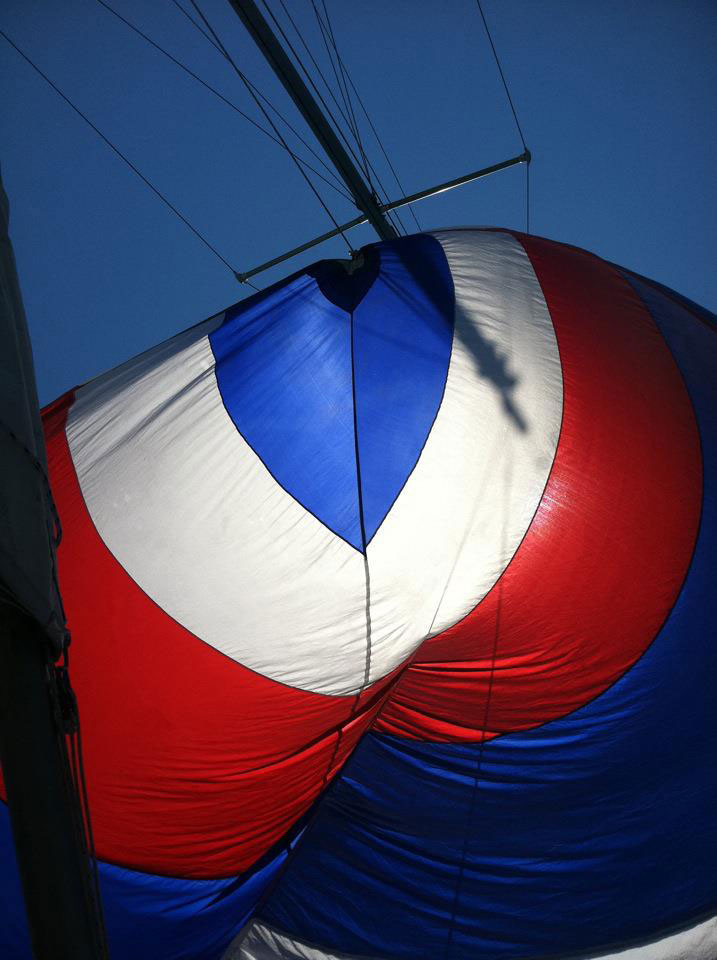 blocks the sun and pushes air down on ya... Keeps the boat into the wind. Small spinn not a Catalina 25 spinn.... an old spinn I had from another boat.