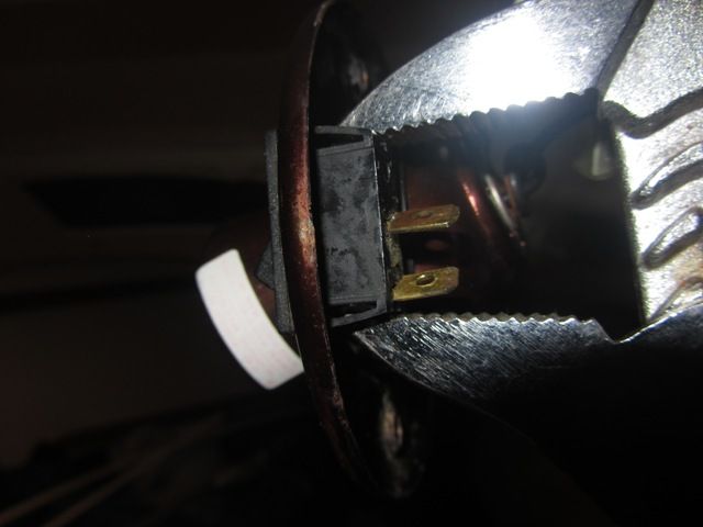 The starboard spot over my dinette has been suffering from an intermittently balky switch, and I had been very nervous about it. I get very nervous with malfunctioning switches. I know that a faulty contact can cause electrical resistance that leads to heat buildup. And while this issue is not as serious for 12VDC as it is for 120VAC, a malfunctioning switch can get as hot as the 10W bulb in the spot, which is hot enough to burn your hand or even melt the plastic in the switch. And aside from the safety concerns, you could run down the battery by thinking the spot is off when the switch is actually on, and after you leave the boat the spot turns itself on again.