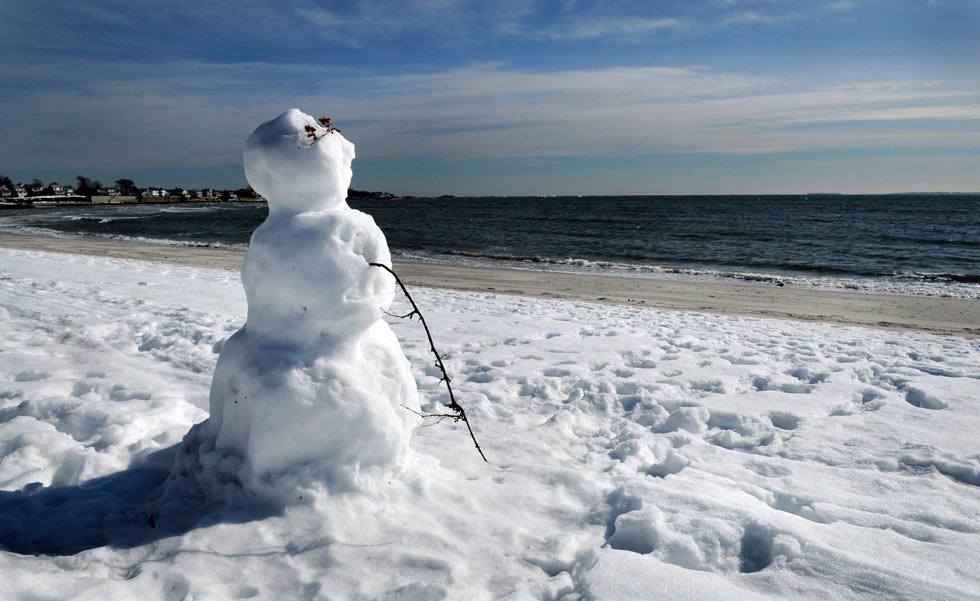 The snowman on the beach was taken at Rocky Neck, Google it. I just threw in the frozen kayaker to emphasize the polar conditions that Ray was showing. Don't know where that was taken. Personally I think the frozen face guys nuts!