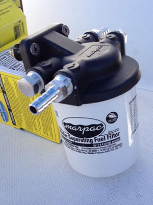 not so much a water issue as simply a good filter to keep any debris out of the carb jets. I like the big filter and I've used this product on a bigger boat for years. The dealers always have this size filter, when I went to West Marine and looked at the smaller fuel filters they were always more expensive and changed inventory every time I went in.