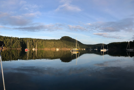 Greg ask about where I was headed and I told him my next stop would be Stuart Island. We chatted about the two harbors on Stuart Island which includes Prevost to the east and Reid to the west. As I had anchored in Prevost on the outbound leg I said I wanted to visit Reid on the way back. I believe Greg mentioned that he would also be headed to Reid. Greg recommended anchoring about two thirds the way up into Reid on the west side. He mentioned that a nest of Peregrine Falcons was in the area and they were impressive to watch. So not only did I learn about the park at the north end of Montegue I also learned of an incredible reason to go to Reid Harbor on my return trip.