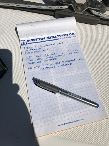 As I tied up the lady on the boat next to me in the previous picture asked me where I was from and where I was going so I told her I wanted to see downtown Vancouver. She had the perfect knowledge about what to do to get there - and she wrote the instructions on the note pad - very helpful.